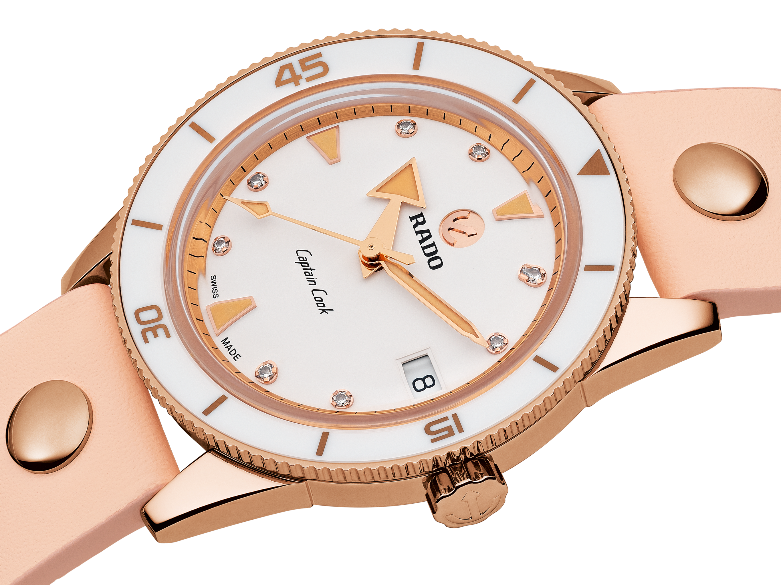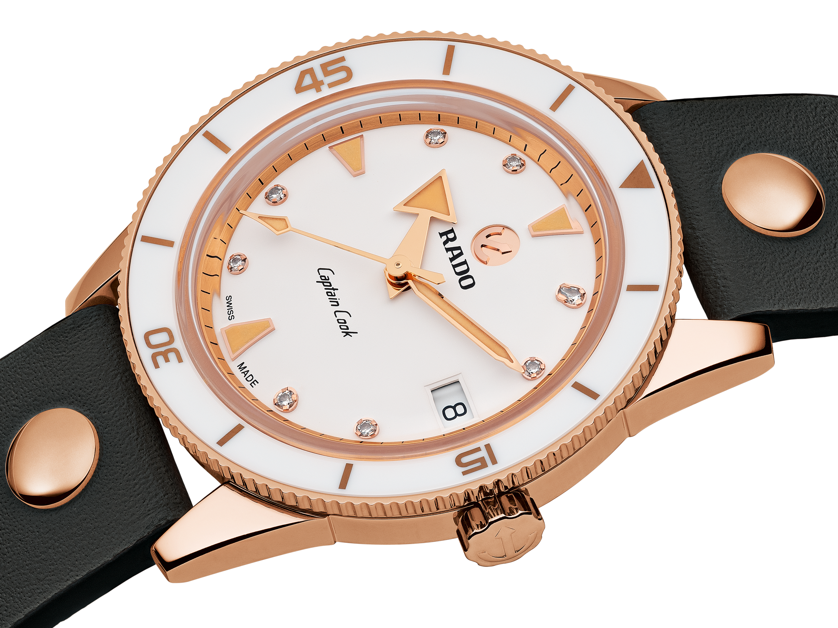After years of exploring timeless materials of extraordinary strength and enticing mystery, Swiss watchmaker Rado launches a new line to celebrate women, and femininity in its myriad forms. The master of unusual substances is teaming up with the profoundly original (and of decidedly unusual substance) French-Austrian designer Marina Hoermanseder for a brand-new version of its Captain Cook timepiece — an exquisitely bold and totally empowering piece of watchmaking elegance. Buckle up for the ride, for Marina loves experimenting with colour, forms and materials, and this latest Rado brings together what she loves best — upbeat, breathtaking design — around a state-of-the-art movement and timepiece by the famous Swiss brand.