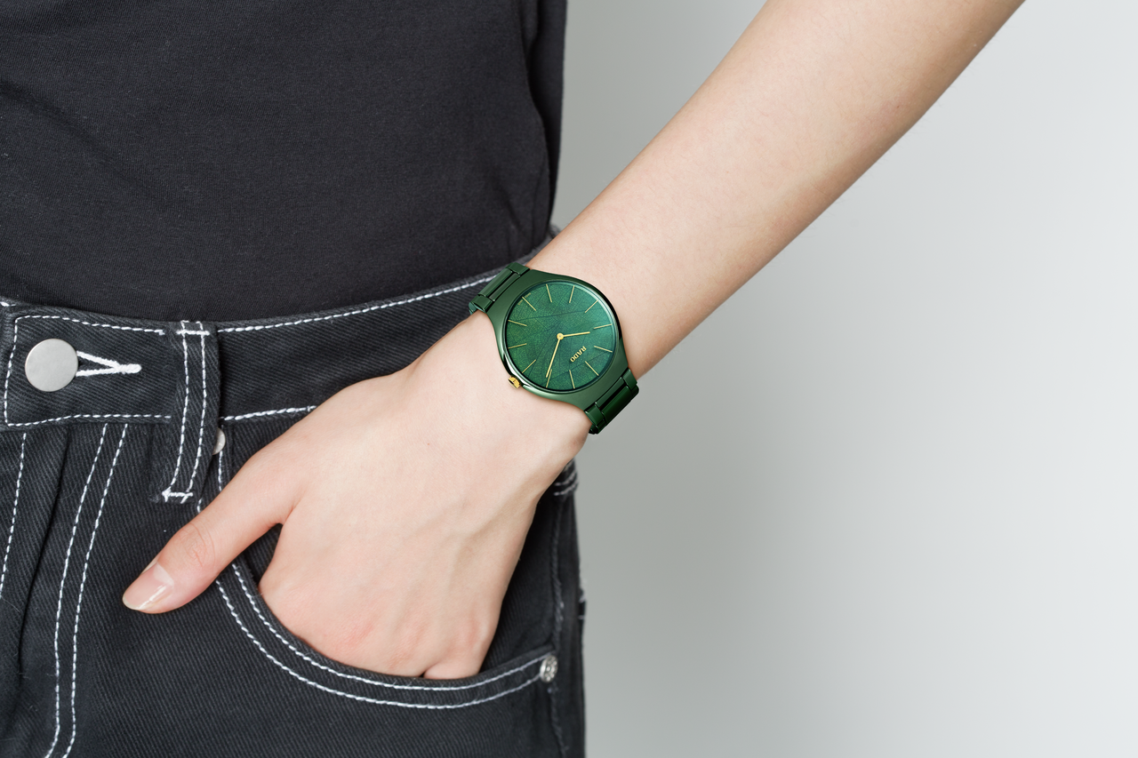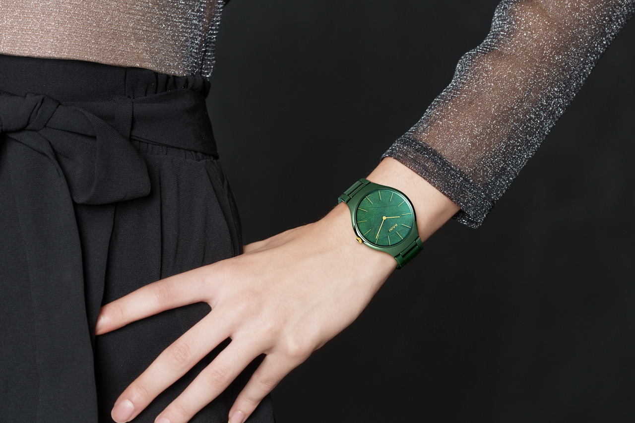 Inspired by nature and Rado’s partnership with the Grandi Giardini Italiani, the True Thinline Nature collection incorporates the very best of the True Thinline collection. With the three colours reflecting the logo of the Grandi Giardini Italiani and with three innovative new dial designs, the three versions represent earth, water and leaves.